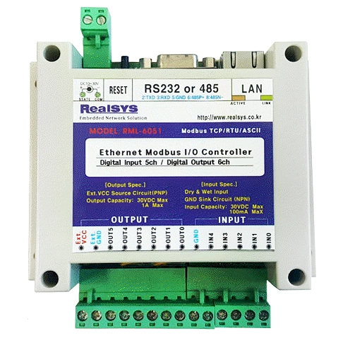 RML6051[TCP Modbus_디지털입출력[IN5/OUT6]]