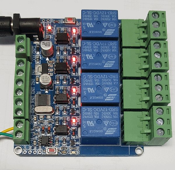 • 4개의 릴레이 10A용량, (NO-COM-NC), 릴레이 상태 표시 LED(4)